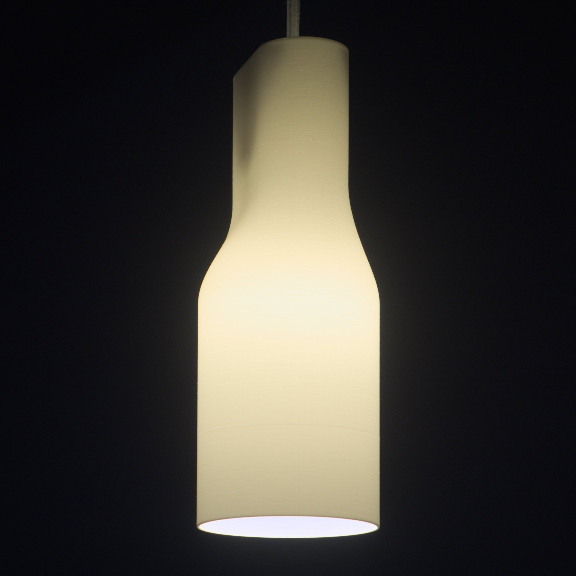 Pips is a minimal hanging lamp shade. Its slim form and multicolor availability makes it perfect for an application in group; either in line or bunched close together. Printed in bio-plastic making it bio degradable, it emits a gentle and uniform light all around. It's a shade that is open at the bottom for more room-filling functional light.
